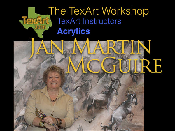 This is the very first time these two world-class art organizations The Society of Animal Artists (SAA) and the Susan Kathleen Black Foundation (SKB), have come together to create one of the most amazing workshops ever. You can study with one artist - or "free flow" between different instructors. This is the FIRST workshop ever where Jan will go in depth into painting with acrylics, from how she gets her ideas all the way to tricks for creating realistic organic textures. |