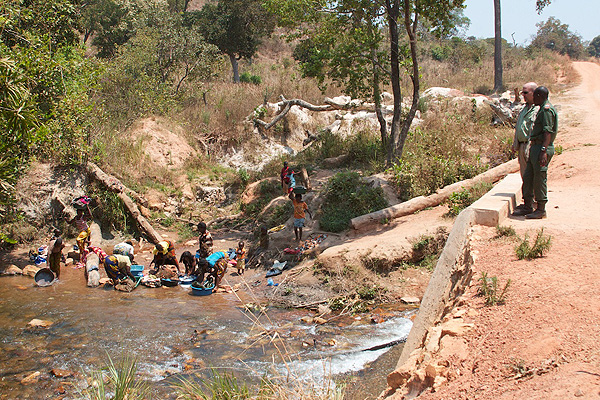 Kamona explaining to James that all the rangers from the 5 rangers stations in the park get their drinking water from rivers that can be poisoned.