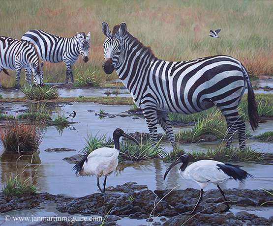 Zebras and birds