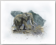 ![]() Elephant Calf Playing in Muddy Water 7 x 22.25" $1,110.00 |
